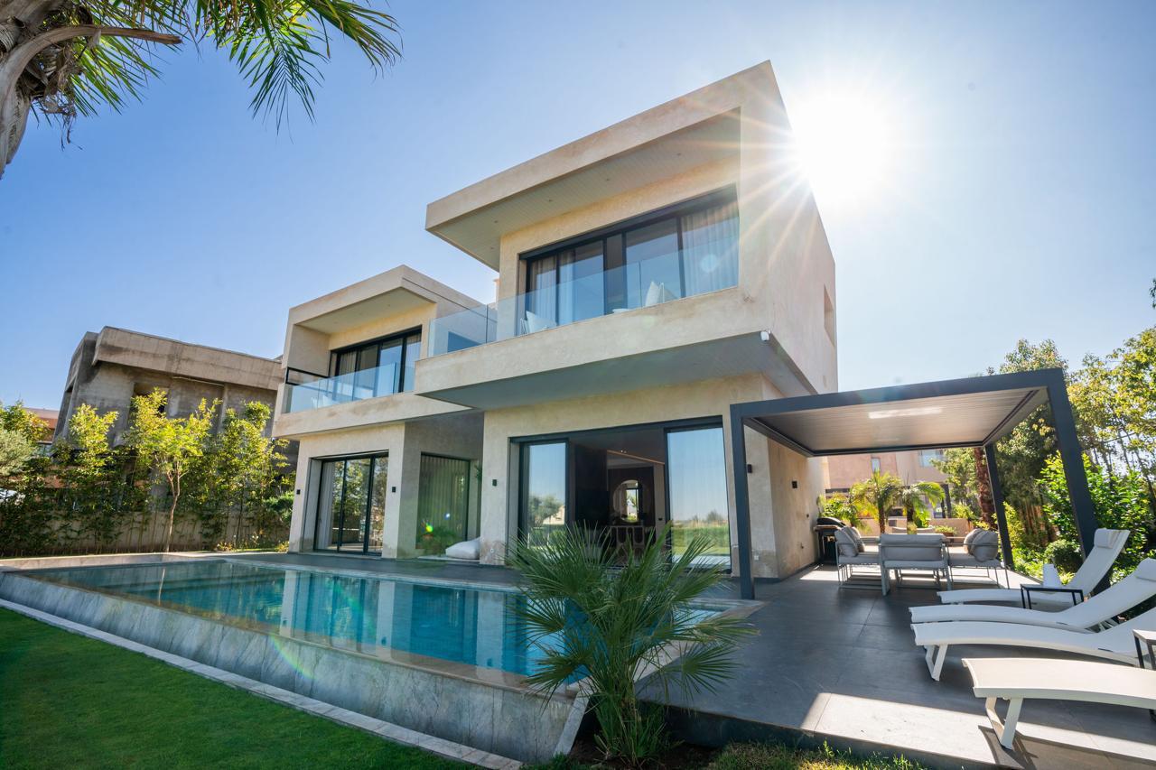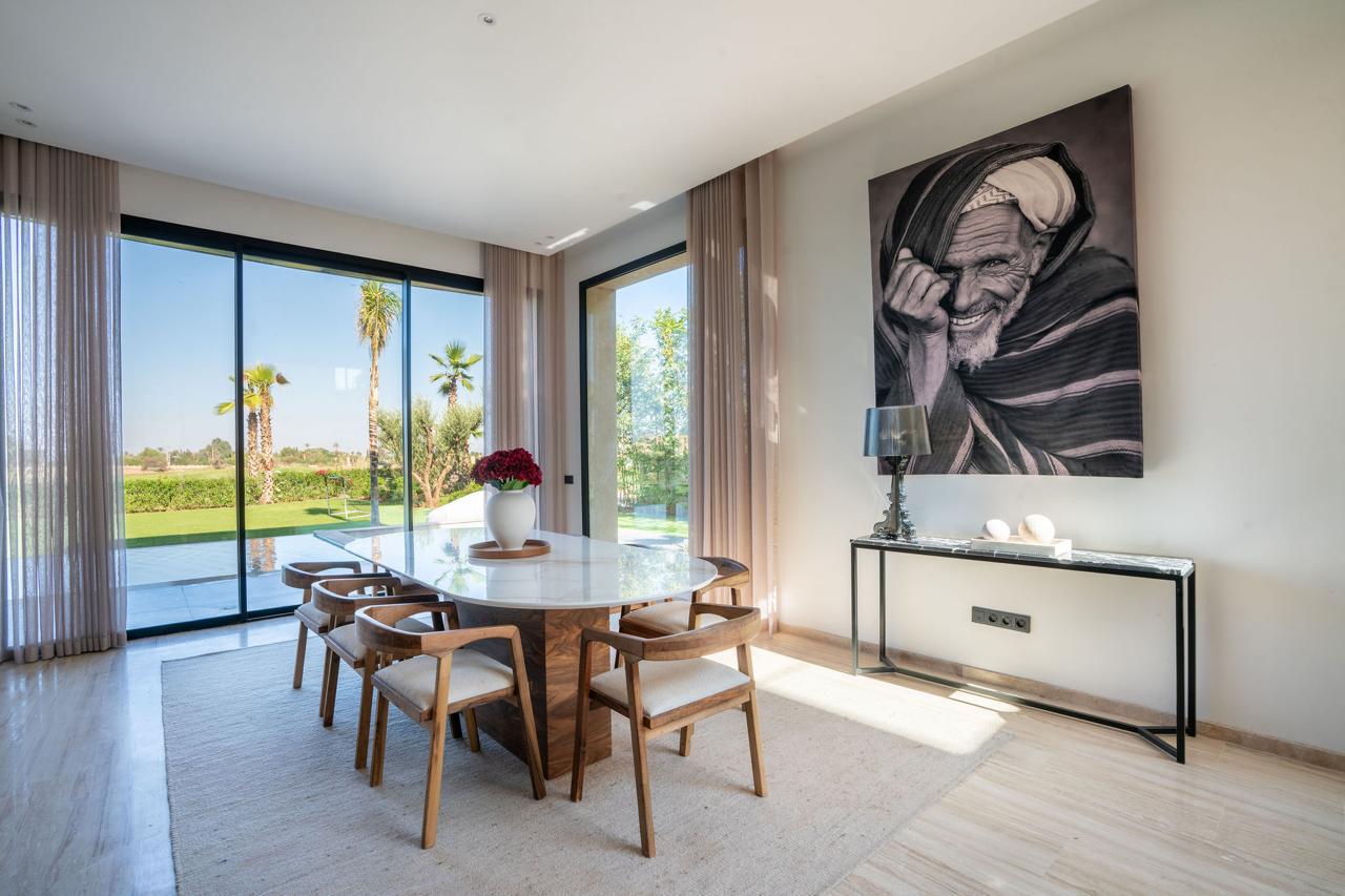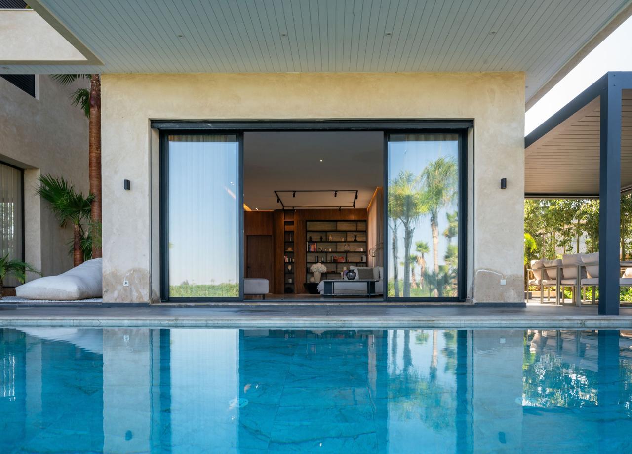 La villa s’organise autour de 5 chambres confortables, offrant à chacun un espace d’intimité après une journée sur le parcours ou à explorer Marrakech. La grande piscine est une promesse de moments rafraîchissants sous le soleil.
