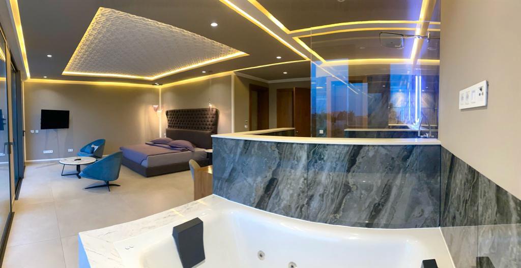 La villa s’articule autour de 5 suites élégantes, garantissant à chaque hôte un confort absolu. Les espaces de vie, chics et lumineux, se prolongent vers l’extérieur où vous attend une superbe piscine chauffée, idéale pour se délasser après une journée de golf ou de visite.